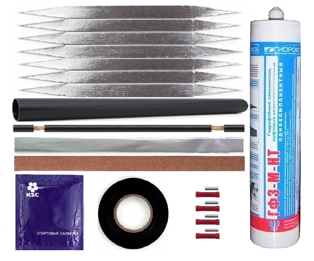 Комплект муфт для монтажа кабелей с полиэтиленовой, алюминиевой, стальной оболочкой ёмкостью 1х4, 4х4, 7х4.